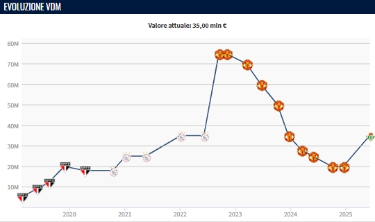 06月09日讯 德转更新西甲球员身价,效力于贝蒂斯的安东尼身价暴涨1500万欧元,从2000万欧元涨至3500万欧元!加盟曼联前,安东尼在阿贾克斯的身价只有3500万欧元,2022年夏窗9500万欧元加盟曼联后,他的身价飙升至7500万欧元!而在2022年11月-2024年10月,安东尼的身价经历7次下跌,最终跌至2000万欧元。本赛季安东尼共出场40次,其中为贝蒂斯出场26次打入9球5助攻,帮助贝蒂斯最终排名西甲第6位,同时收获欧协联亚军。