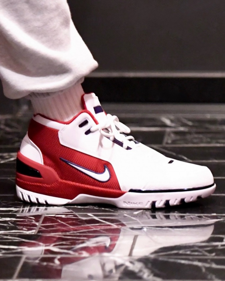 他在本场比赛赛前穿着了詹姆斯首代签名鞋 Nike Air Zoom Generation“First Game”入场,而这双鞋是詹姆斯职业生涯首战穿着的配色。