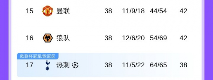 08月25日讯 英超第2轮,热刺2-0客胜曼城,曼联1-1客平富勒姆。新赛季英超,热刺开局2连胜且0失球,暂居第二;曼联2轮仅积1分,目前排在第16。上赛季英超,曼联与热刺堪称“难兄难弟”,曼联42分排名第15,热刺38分排名第17。