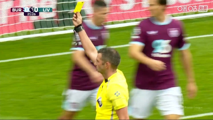 第4轮,利物浦客战伯恩利,比赛第22分钟,科尔克兹在禁区内倒地,裁判果断吹罚假摔并出示黄牌。